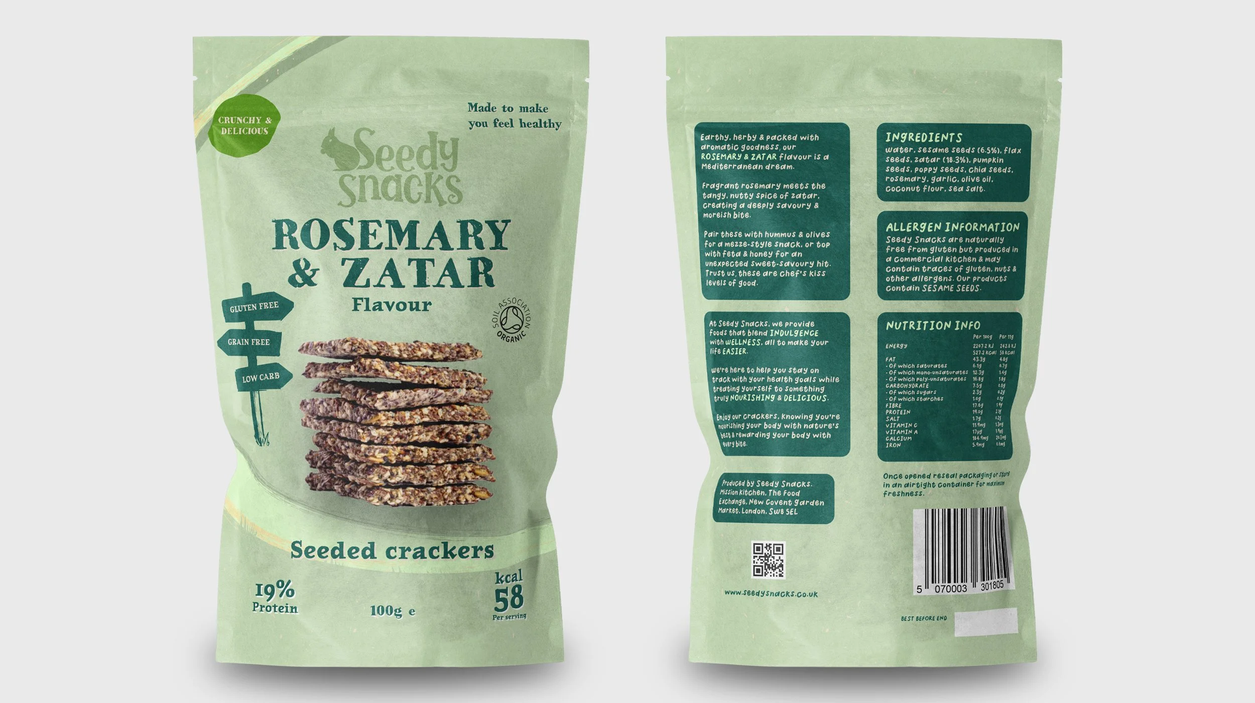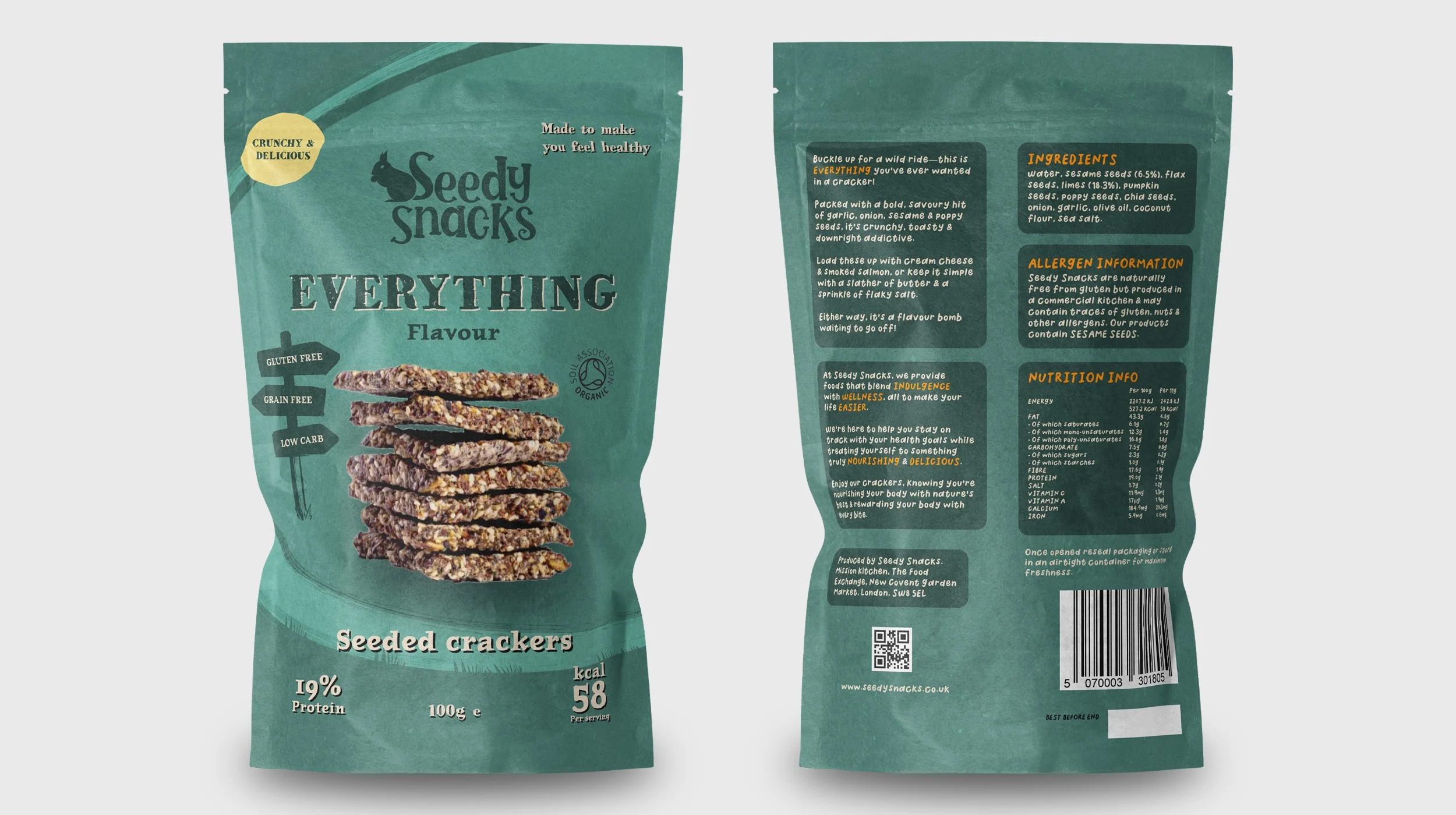 This was a packaging design concept for Seedy Snacks, a London based brand with a simple but powerful mission, to make seeded crackers that actually taste good.